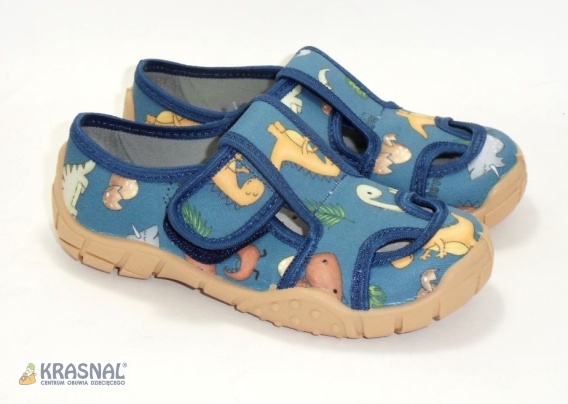 Chłopięce kapcie firmy Raweks zapinane na rzep.